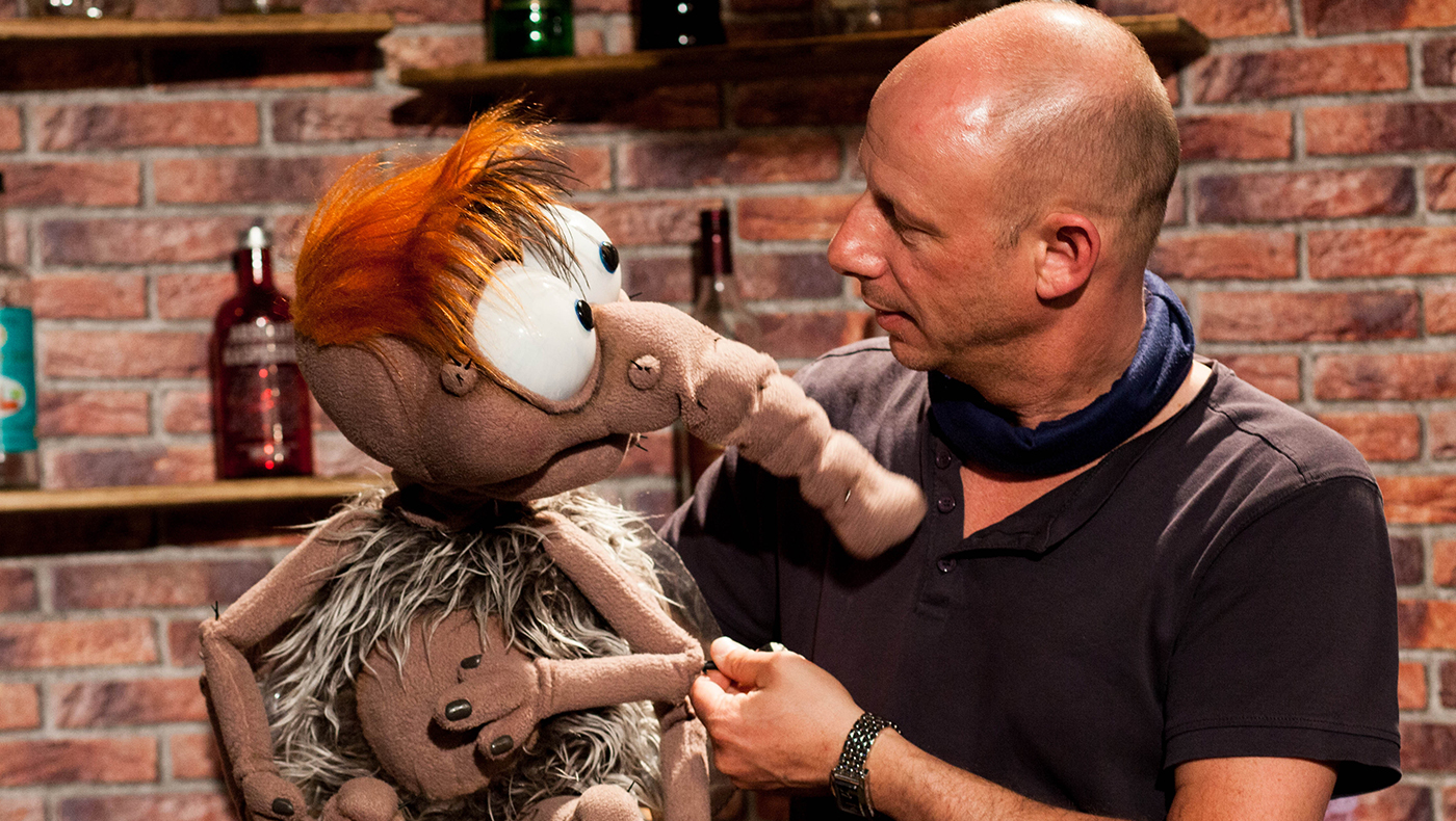Der Bauchredner Benjamin Tomkins ist beim dritten 99drei WarmUp aufgetreten und machte seinem Titel als „Puppenflüsterer“ alle Ehre.