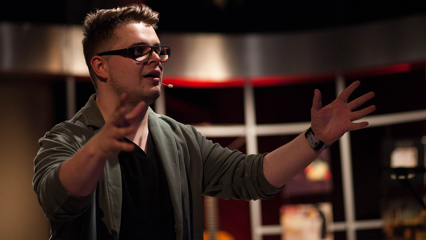 Gleich zu Beginn seines Auftritts stellte Benjamin Tomkins klar, dass das Publikum bei ihm keine klassische Bauchredner-Nummer zu erwartet hätte. Was er im Laufe des Abends mit einer Kombination aus Bauchrednerei, Puppenspiel, Stand-Up-Comedy, Klaviereinlagen und Anekdoten seiner Mutter auch bewies.