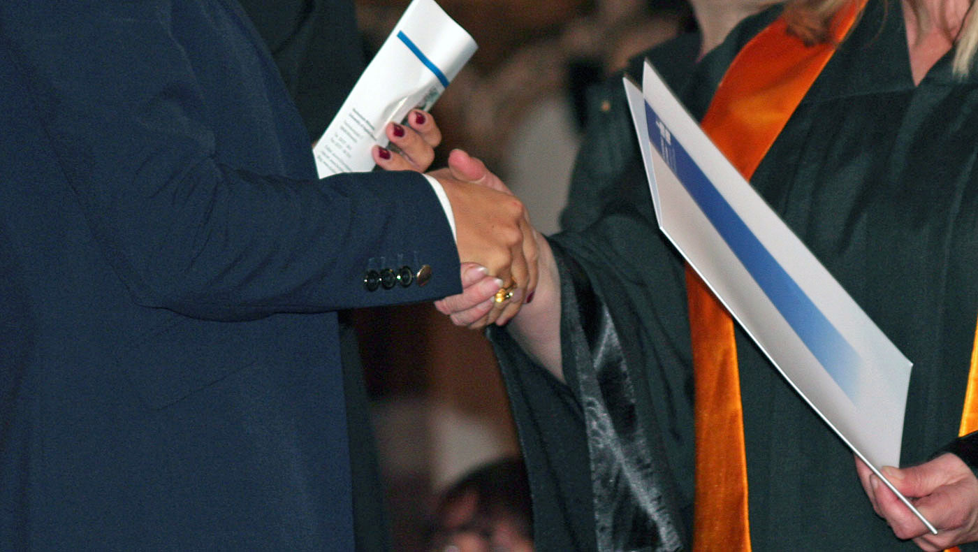 Neben dem Erhalt des Bachelorhuts − auch „Barett“ gennant − mit dem die Studenten offiziell in den Rang eines Absolventen gehoben werden, wurde ihnen auch persönliche Glückwünsche ausgesprochen und eine Urkunde überreicht. Prof. Herbert E. Graus verlieh im Anschluss den von ihm gestifteten Preis an die Studenten, die sich in der Vergangenheit mit den besten Gründungsideen hervorgetan hatten.