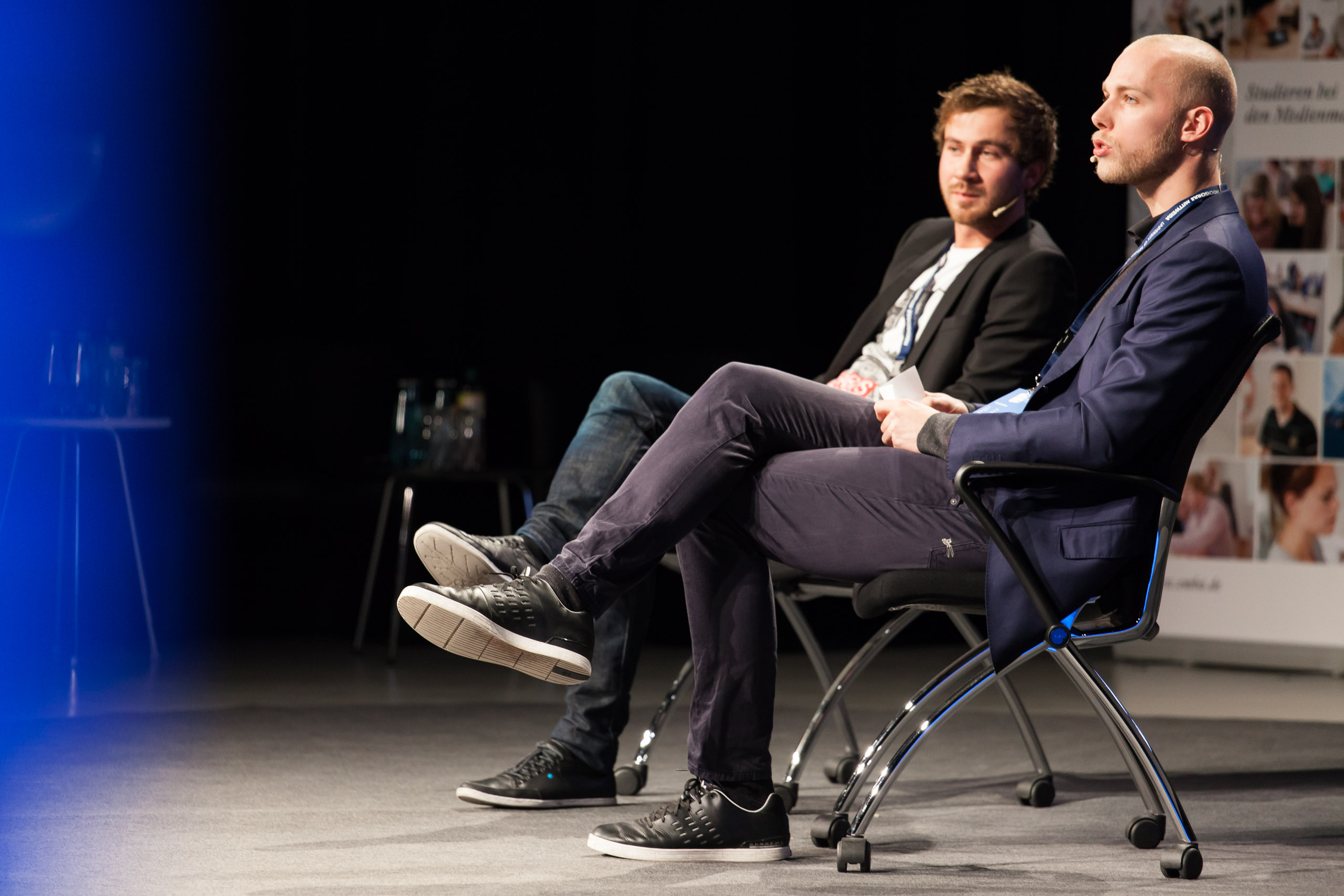 Florian Greiner, Student bei der Europäischen Medien- und Businessakademie EMBA und Mitbegründer des MediaLabs, und Marius Krösche, ebenfalls Student der EMBA und Gründungsmitglied bei MediaLab, beschäftigen sich zusammen mit „Hamburg@work“ mit dem Projekt “Zukunft der Arbeit”.