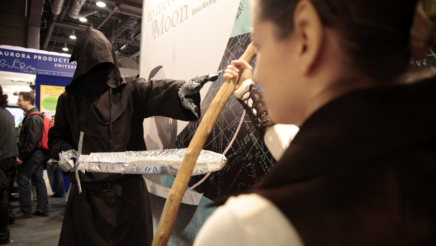 Cosplaying ist ein Phänomen aus Japan, das bereits seit vielen Jahren auf den Buchmessen in Frankfurt und Leipzig und verschiedenen Comic-Treffen in ganz Deutschland auftritt. Die Tradition liegt in den Mangas, längst haben sich aber viele Cosplayer aus der Szene von diesen Wurzeln gelöst. Neben Hobbits, Zauberern und Elben erleben die Besucher der Buchmesse 2012 auch Pop- und Film-Ikonen, Roman-Figuren und Comic-Helden.