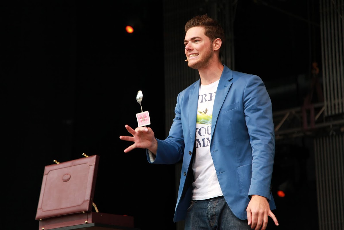 Facettenreich war auch der erste Festivaltag am Donnerstagabend, den 19. Juni. Zauberkünstler und derzeitiger Student der Hochschule Mittweida, „Ben David“, unterhielt das Publikum mit seinen magischen Tricks. Comedian Benny Kaltenbach war lange Zeit der jüngste Stand-Up Comedian, der je im „Quatsch Comedy Club“ aufgetreten war. Von ProSieben und Co. kam er schließlich zum Campusfestival 2014 und überzeugte mit seinem schwarzen Humor.