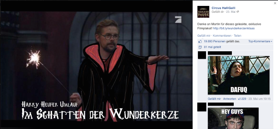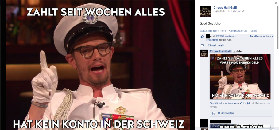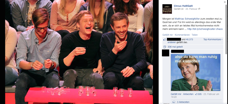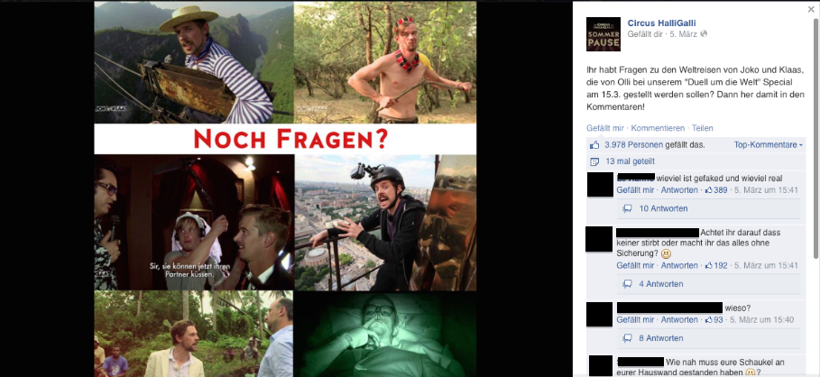 Dennoch kommt die Sendung beim jungen Publikum unglaublich gut an. Insgesamt 1,5 Millionen Likes haben sich Joko und Klaas mit ihrer Show Circus HalliGalli auf Facebook erkämpft. Wurde die Show durch ihren Facebook-Auftritt also erfolgreicher?