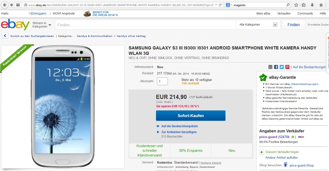 Wer nach einem bestimmten Gegenstand sucht, der kann nicht nur ersteigern. Bei dem Online-Auktionshaus stehen auch Produkte zur Verfügung, die nur neu per Sofortkauf erworben werden können. Hinter solchen Sofortkäufen stecken, neben Fehlkäufen einzelner Nutzer, vor allem Unternehmen, die ihr Angebot auf eBay ausweiten. So zum Beispiel die „Price-Guard AG”.