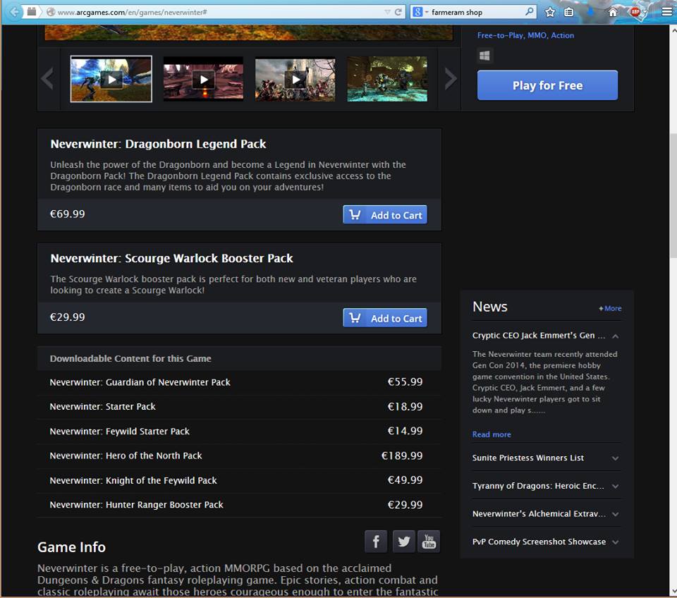 - Bei „Neverwinter“ schließt an den „Play for free“-Button gleich der Shop an.