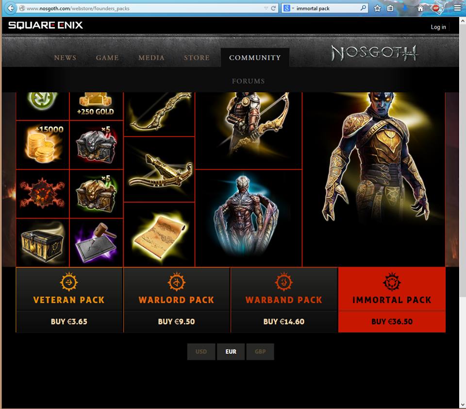 - Bei „Nosgoth“ kann der Spielende verschiedene Pakete gegen Echtgeld erwerben.