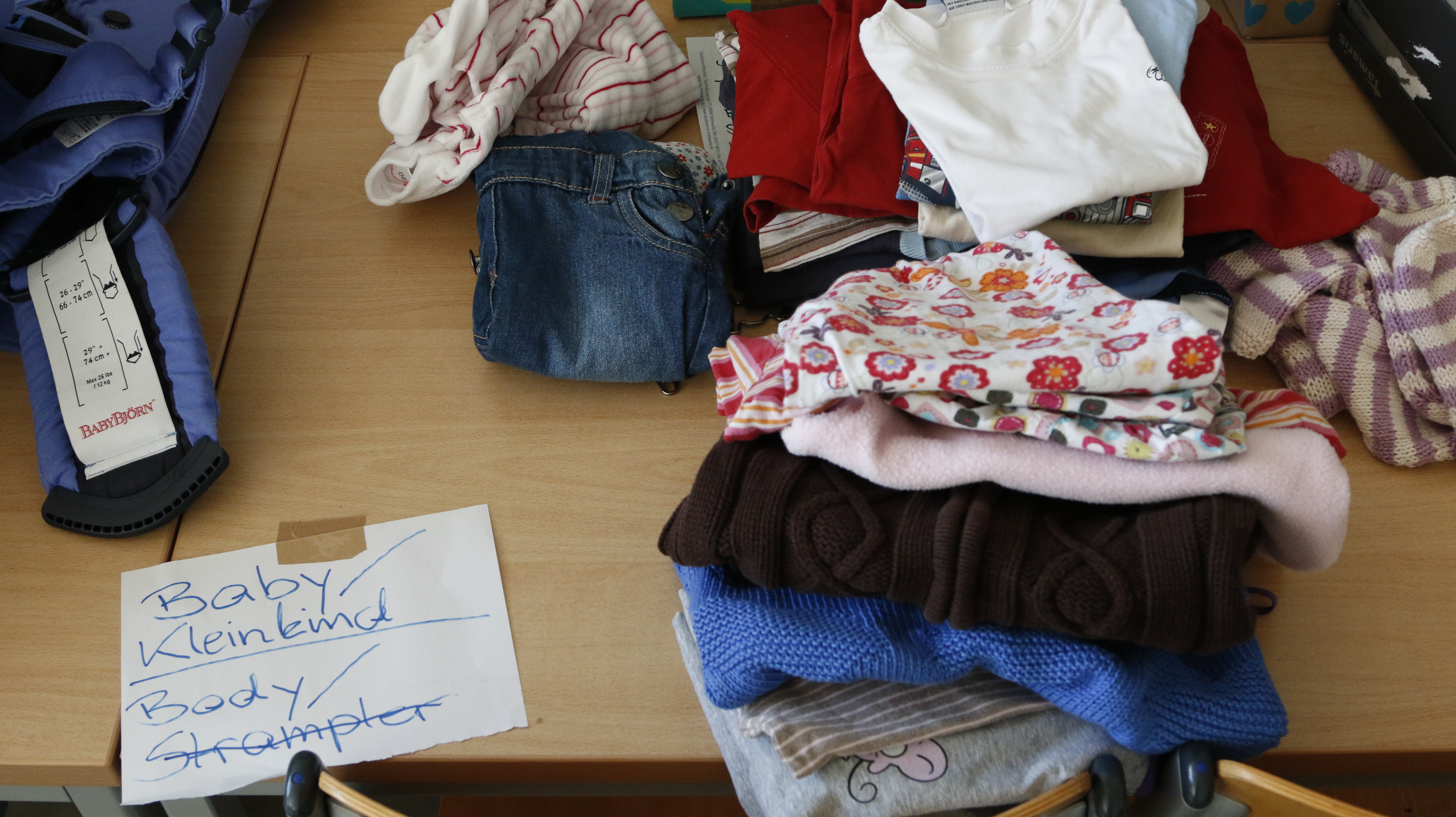 Gordon: Wir haben Sachen bekommen, die wir jetzt zurzeit nicht brauchen, aber dadurch, dass die Flüchtlinge in der Halle oft wechseln, haben wir eigentlich gute Hoffnung, dass wir alles brauchen können. Wir haben auch viele Sommersachen bekommen. Aber dadurch, dass es für längere Zeit geplant ist, nehmen wir auch das gern.