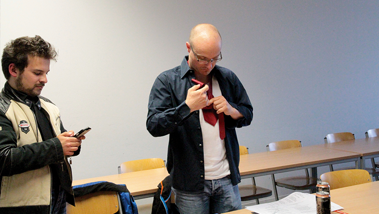 Um uns kennenzulernen, fand ein paar Wochen vorher ein Treffen mit allen Kandidaten statt. Man sah quasi der Konkurrenz direkt ins Auge. Nur, dass wir uns nicht als Konkurrenz sahen, weil wir alle einfach Spaß an der Sache hatten. Zum Treffen wurden dann auch nochmal die Songs besprochen. Dabei mussten wir feststellen: Meine Kommilitonin Julia Schönfeld und ich hatten einen Song ausgewählt, der dem Song von Matthias Berthold (Fakultät MNI – Mathematik, Naturwissenschaften, Technik) ähnlich war. Da wir darüber hinaus den Song nicht kannten, den die beiden anderen Sänger der Fakultät Medien singen wollten, haben wir uns kurzerhand mit Matthias zusammengetan und sind mit für seine Fakultät angetreten. Wir fanden das nicht schlimm, denn so lernt man auch einmal Studenten aus den anderen Fakultäten kennen und kann sich austauschen.