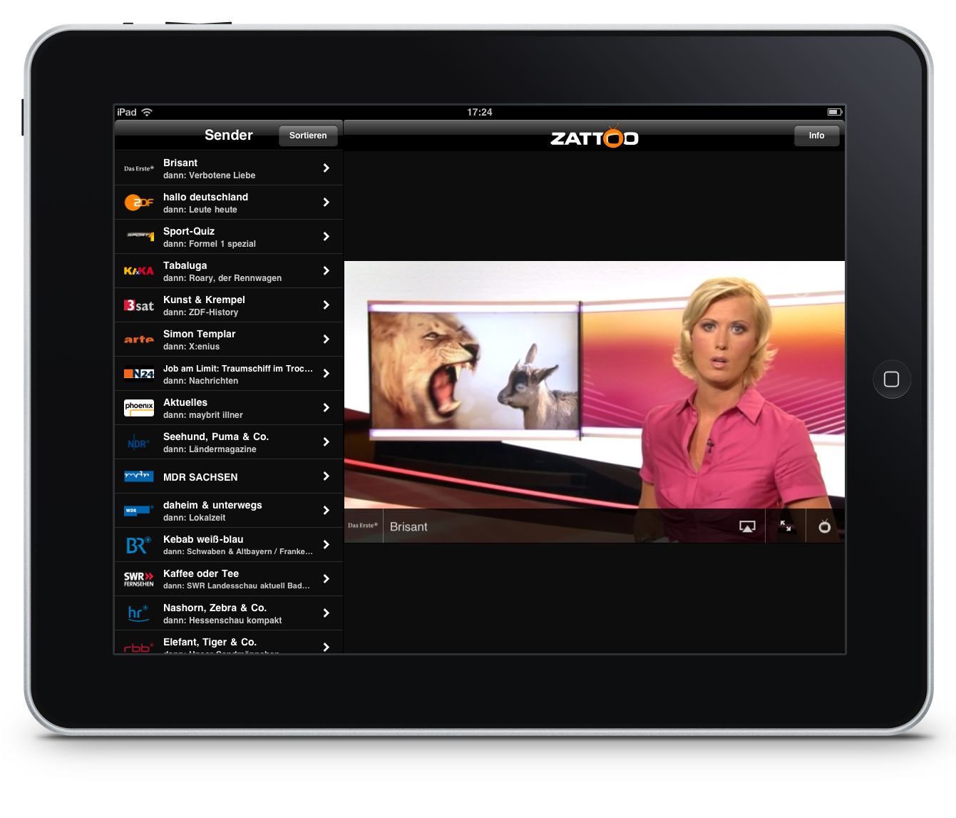„Zattoo“ bietet seit 2009 den Empfang deutscher Fernsehkanäle und zählt rund aktive registrierte 700.000 Nutzer. Die Eine-Millionen-Marke könnten sie aber bereits in der WM knacken. Der Schweizer IPTV-Dienst ist auf allen gängigen Plattformen verfügbar, entweder über den Internetbrowser oder als App für Smartphones und Tablets aus den jeweiligen App Stores von Google, Apple auf dem IOS- und Android-Betriebssystem. Im Gegensatz zu einem Video-On-Demand-Service, bei dem der Nutzer aus der Mediathek per Klick Filme und Serien auswählen kann, bietet dieses Angebot die Möglichkeit, das Fernsehprogramm live zu verfolgen. Mittlerweile gibt es auch einige Smart-TV-Hersteller, wie Samsung und LG, bei denen die App auf den Fernseher bereits vorinstalliert ist. Eine Internetverbindung wird dabei natürlich vorausgesetzt. In der Basisversion werden alle öffentlich-rechtlichen Sender und eine Handvoll privater Fernsehsender kostenfrei angeboten. Für 9,99 Euro kann der Zuschauer sich das HiQ-Paket dazubuchen. Damit wird das Programmangebot auf alle gängigen Privatsender erweitert und in einer höheren Auflösung gestreamt.