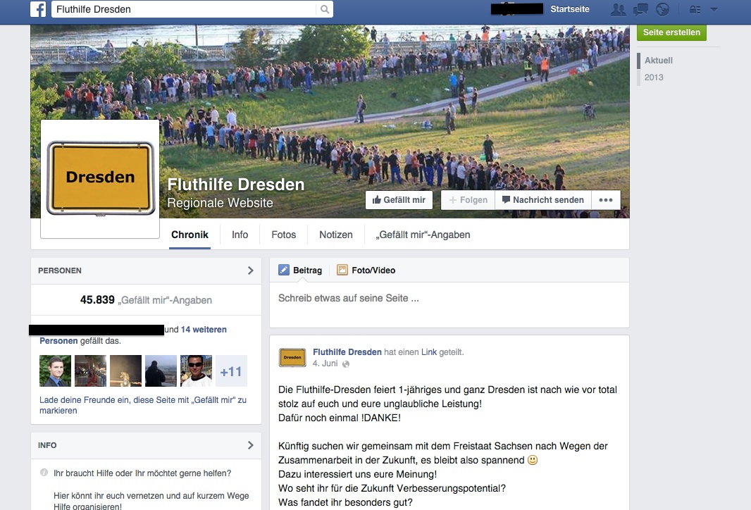 So fasste Sachsens Innenminister Markus Ulbig in seinem Artikel „Anpacken 2.0“ die damalige Situation zusammen. Ohne die vielen zusätzlichen Facebook-Freiwilligen wären die Schäden wohl noch größer gewesen.