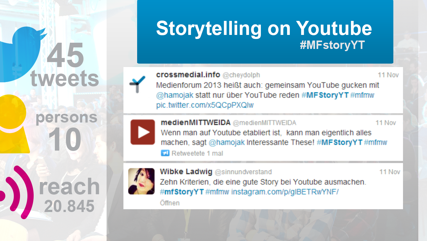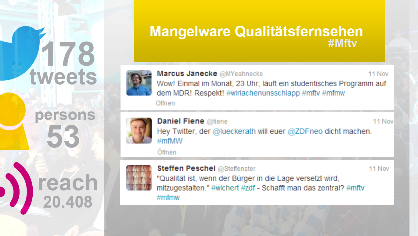 Entsprechend des diesjährigen Mottos „Impuls der Zeit“ des medialen Fachkongresses „Medienforum Mittweida“ trafen erfahrene Medienmacher auf neugieren Mediennachwuchs zum direkten Austausch über medienrelevante Themen. Medienprofis wie David Roland, „Industry Head Automotive“ von Google Deutschland, ZDF-Social Media Manager Michael Umlandt oder DWDL.de-Chef Thomas Lückerath waren neben weiteren Kennern der Branche zu Gast. Auch externe Besucher hatten die Möglichkeit, beide Kongresstage via Livestream (mobil) mitzuverfolgen.