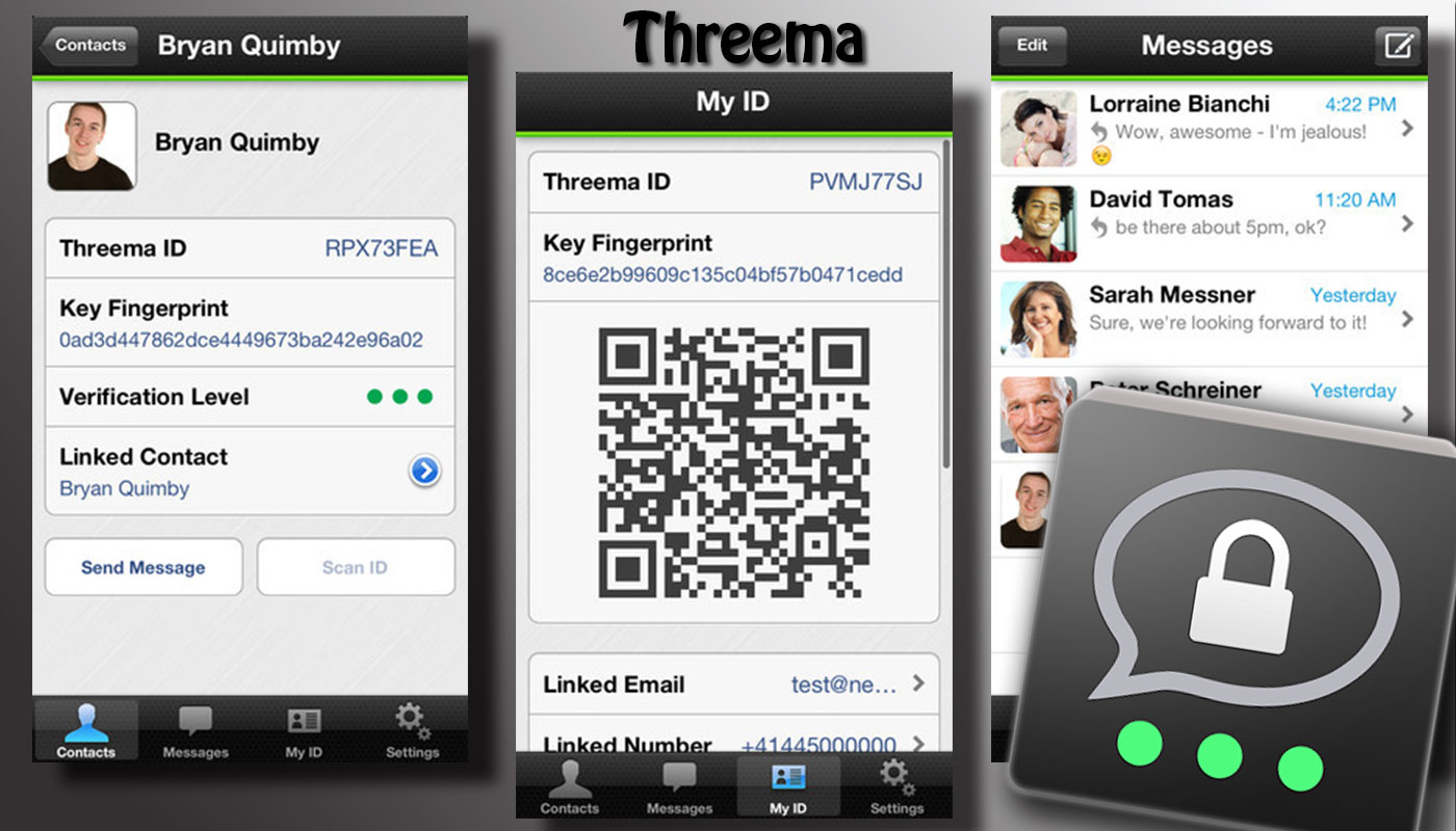 Der kostenpflichtige Messenger Threema ist wohl die bekannteste Alternative. Für iOS bezahlen Nutzer einmalig 1,79 €, für Android 1,60 €. Angeblich stiegen die Nutzerzahlen nach Bekanntwerden des Deals zwischen Facebook und WhatsApp über Nacht um das Doppelte. Hier wird eine Ende-zu-Ende-Verschlüsselung versprochen, die es selbst den Betreibern unmöglich macht, Daten mitzulesen. Um die leere Kontaktliste zu füllen, wird ein kryptografischer Schlüssel erstellt. Eine Synchronisierung des Telefonbuchs ist jedoch ebenfalls möglich. Die PSW-Group testete auch diesen Messenger und konnte keine direkten Sicherheitsprobleme feststellen. Der ausführliche Test ist hier zu finden.
