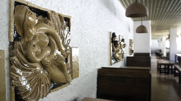 Von zehn Keramik-Halbreliefs über die „Beziehungen von Mann und Frau“ bis hin zur Collage des chilenischen Künstlers Juan Hernando León sei gerade in der Mensa eine enorme Bandbreite zu finden. In den beiden anderen Speisesälen ist eine zweiteilige Installation von Rudolf Sitte ausgestellt. Der Künstler habe für sein Werk „Elektronische Funktionselemente“ das Schema bestückter Leiterplatten gewählt, um damit zum Nachdenken über die Ästhetik der Technik anzuregen.