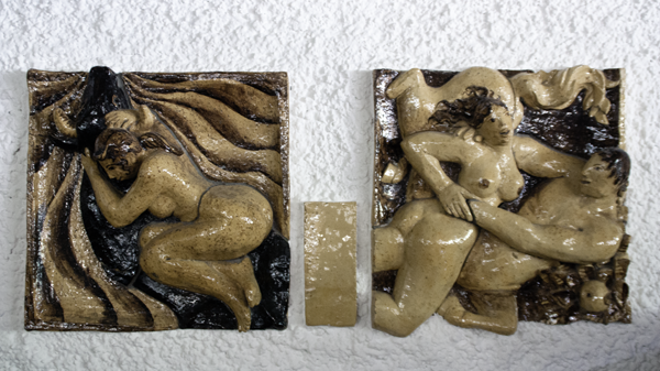Doch auch an anderen Orten der Hochschule finden sich diverse Kunstwerke, zum Beispiel in der Mensa. „Alle Kunstwerke, bis auf die Stele von Gunter Beier im Foyer, wurden für diesen Bau geschaffen. Die Architekten wählten die Diplomarbeit von Beier zusätzlich aus“, erklärt Prof. Dr. phil. habil. Jan-Peter Domschke von der Arbeitsgruppe Hochschulgeschichte.
