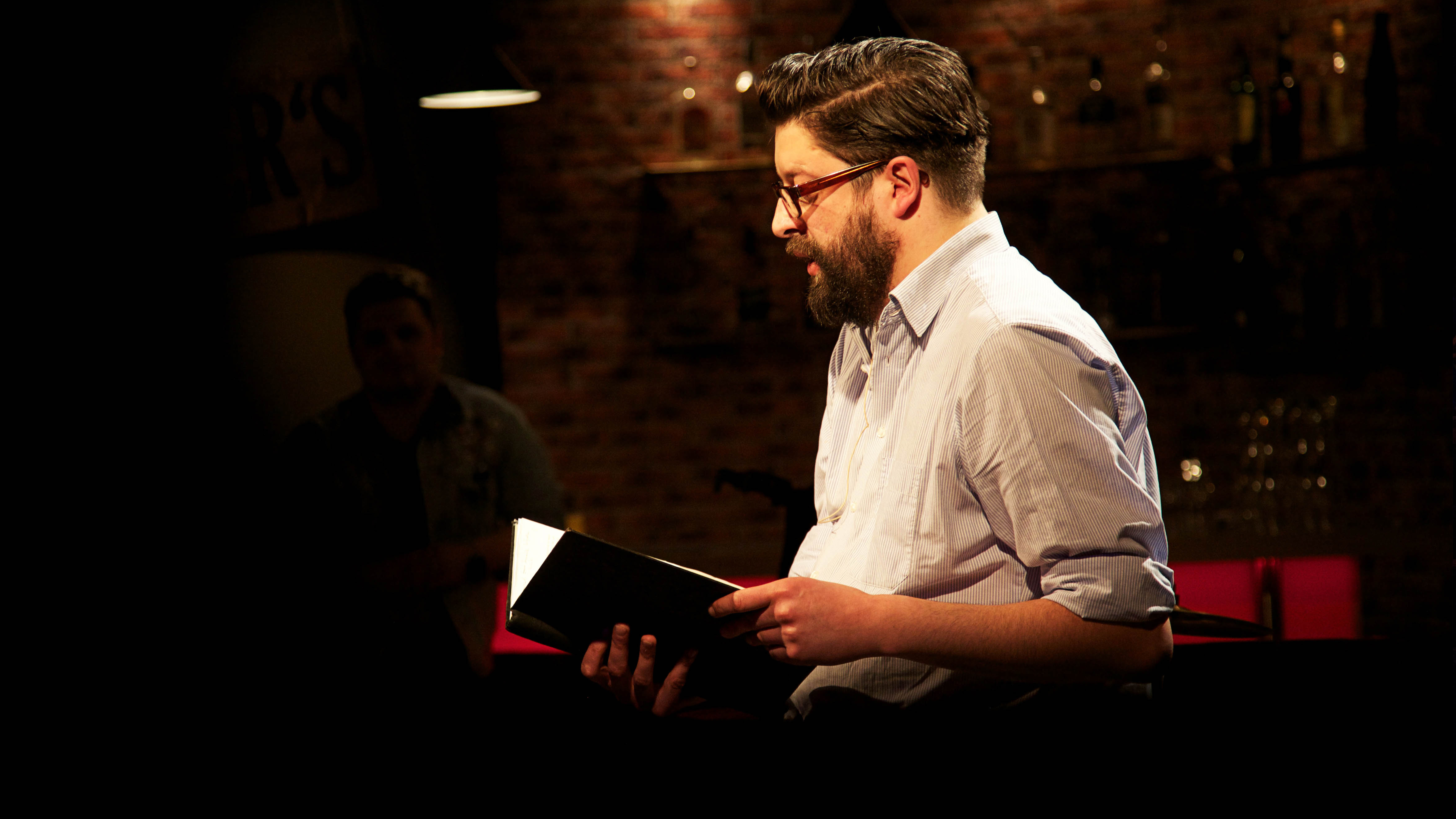 - Das Fernsehstudio wurde in eine gemütliche Bar umgewandelt.
