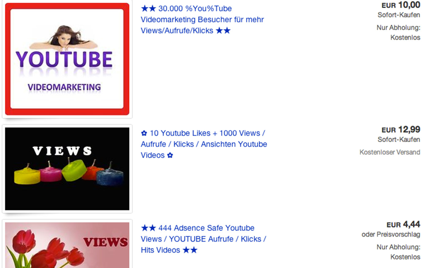 - Youtube-Klicks zum Sofortkauf auf eBay.