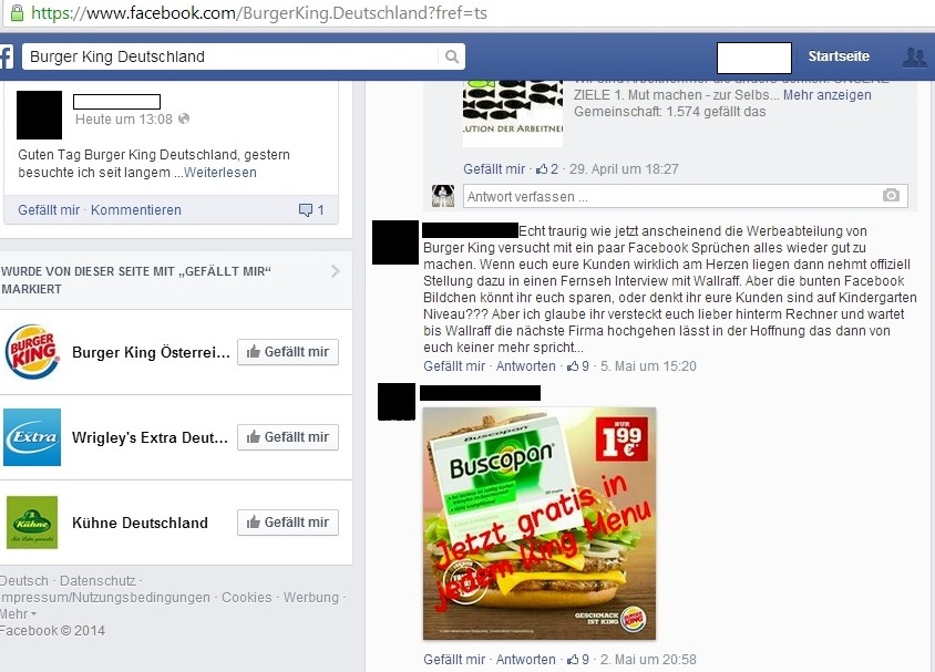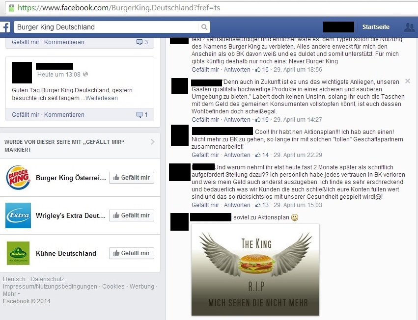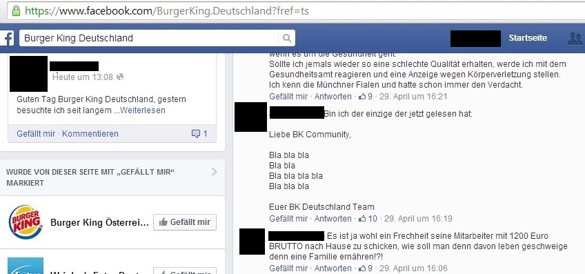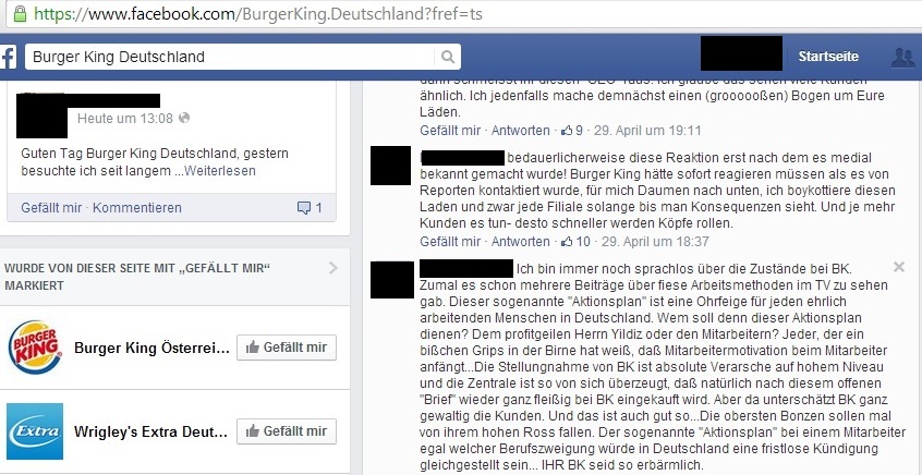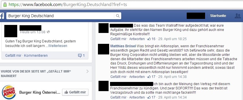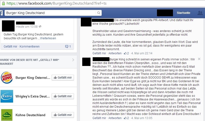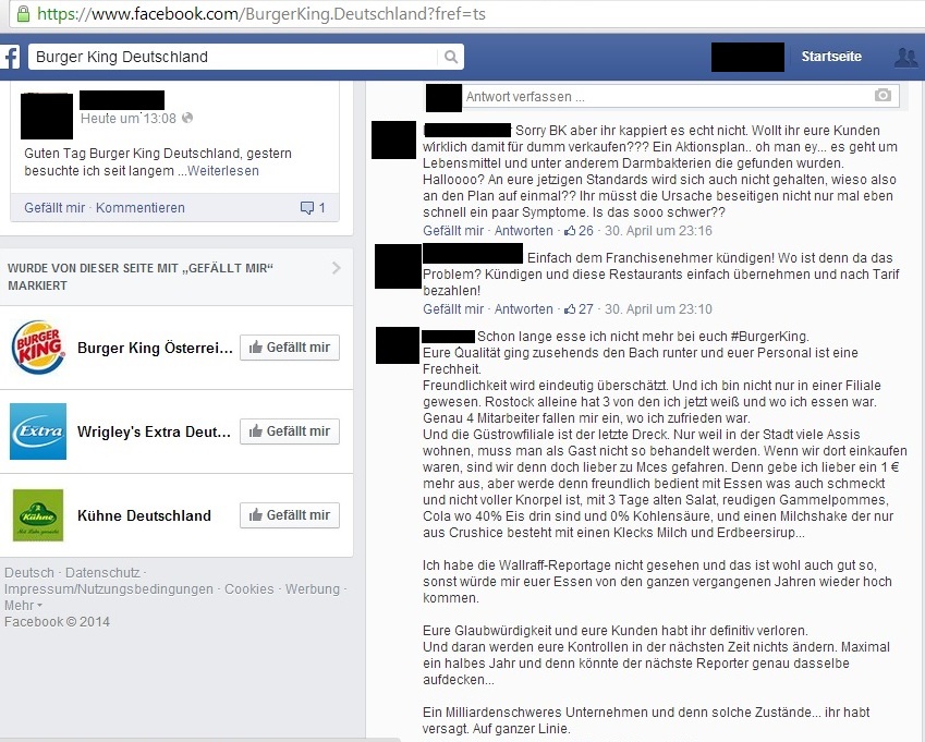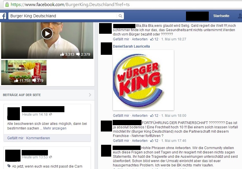 Auch die Fast-Food-Kette „Burger King“ wurde Anfang Mai von einem Shitstorm nahezu überrollt. Nachdem Günter Wallraff in der RTL-Reportage „Team Wallraff – Reporter unterwegs“ hygienische Missstände bei Burger King aufdeckte, brach ein riesiger Shitstorm auf allen Social Media-Kanälen des Unternehmens aus.