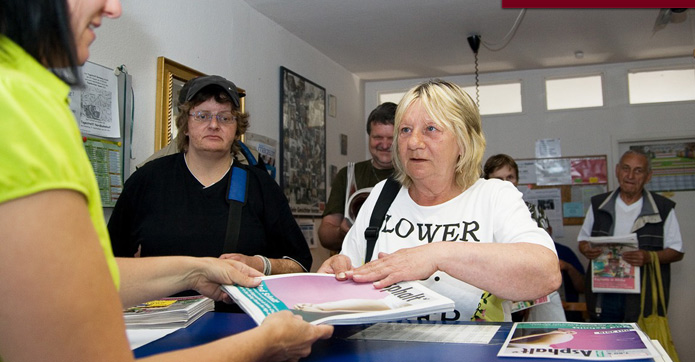 Ein besonders häufiges Missverständnis klärt Projektleiter Björn Wilda gleich zu Beginn unseres Telefonats: „Die ‚KiPPE‘ wird nicht von Obdachlosen verkauft. Unsere Straßenverkäufer sind Menschen, die von Wohnungslosigkeit betroffen oder bedroht sind sowie Rentner, Langzeitarbeitslose und Hartz-IV-Empfänger.” Wie bei den meisten Straßenzeitungen arbeiten die Verkäufer allerdings nur selten direkt am Inhalt. „Die redaktionelle Arbeit wird von zwei fest angestellten Redakteuren erledigt, die auch journalistisch ausgebildet sind. Außerdem haben wir einige ehrenamtliche Helfer: zum Teil auch Freiberufler.” Die Anzahl der überwiegend ehrenamtlichen Journalisten variiert zwischen den Zeitungen ebenso stark wie deren thematische Ausrichtungen. „Die Themen betreffen natürlich vornehmlich die Stadt und das Leipziger Umland. Wir beschäftigen uns mit sozialen Angelegenheiten, aber auch Kultur und Geschichte. Das führt auch gelegentlich zu Serien. Zum Beispiel arbeiten wir, anlässlich der ‚Leipziger Buchmesse‘, an einer Serie über Leipziger Verlage. Und unsere Reihe über die Leipziger Straßenbahn ist inzwischen mehrjährig.”